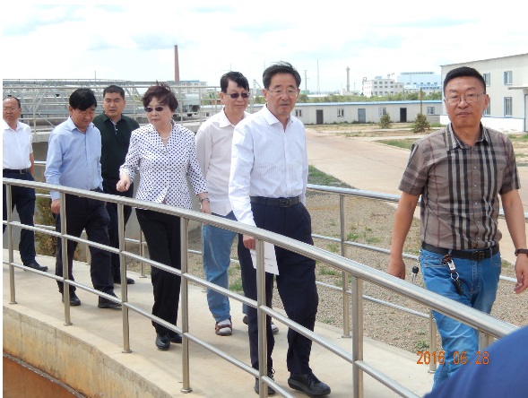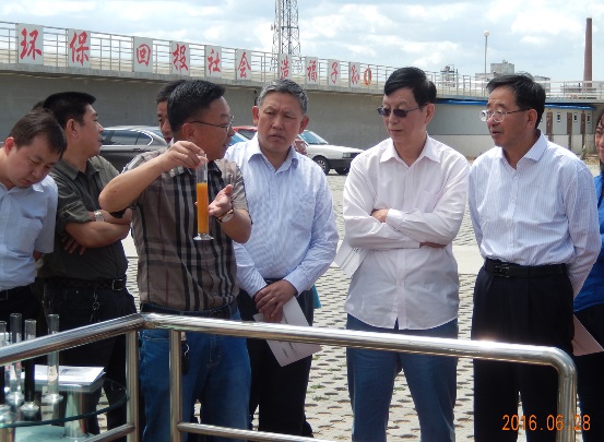 2016年06月28日上午,內(nèi)蒙古自治區(qū)政協(xié)副主席、黨組副書(shū)記陳羽、呼和浩特市政協(xié)副主席李宏一行在呼和浩特市環(huán)保局副局長(zhǎng)金瑞山、托克托縣縣長(zhǎng)郭志鋼、副縣長(zhǎng)高巴圖、托縣環(huán)保局領(lǐng)導(dǎo)的陪同下,蒞臨內(nèi)蒙古金河環(huán)保科技有限公司參觀考察,就金河環(huán)保的生產(chǎn)情況、生產(chǎn)工藝流程以及出水指標(biāo)等方面進(jìn)行了了解,內(nèi)蒙古金河環(huán)保科技有限公司總經(jīng)理田中宏、副總經(jīng)理楚新華全程陪同講解。